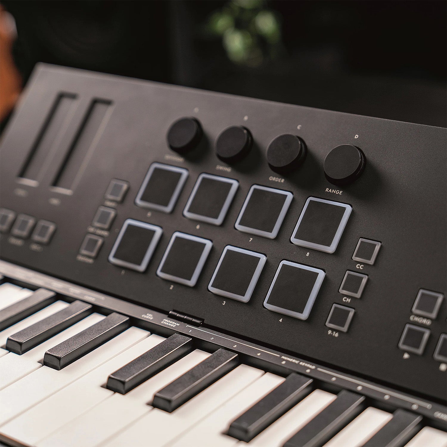 - Būgnų padai (Drum Pads): Apšviesti ir dinaminiai padai ritmų kūrimui ir semply paleidimui.