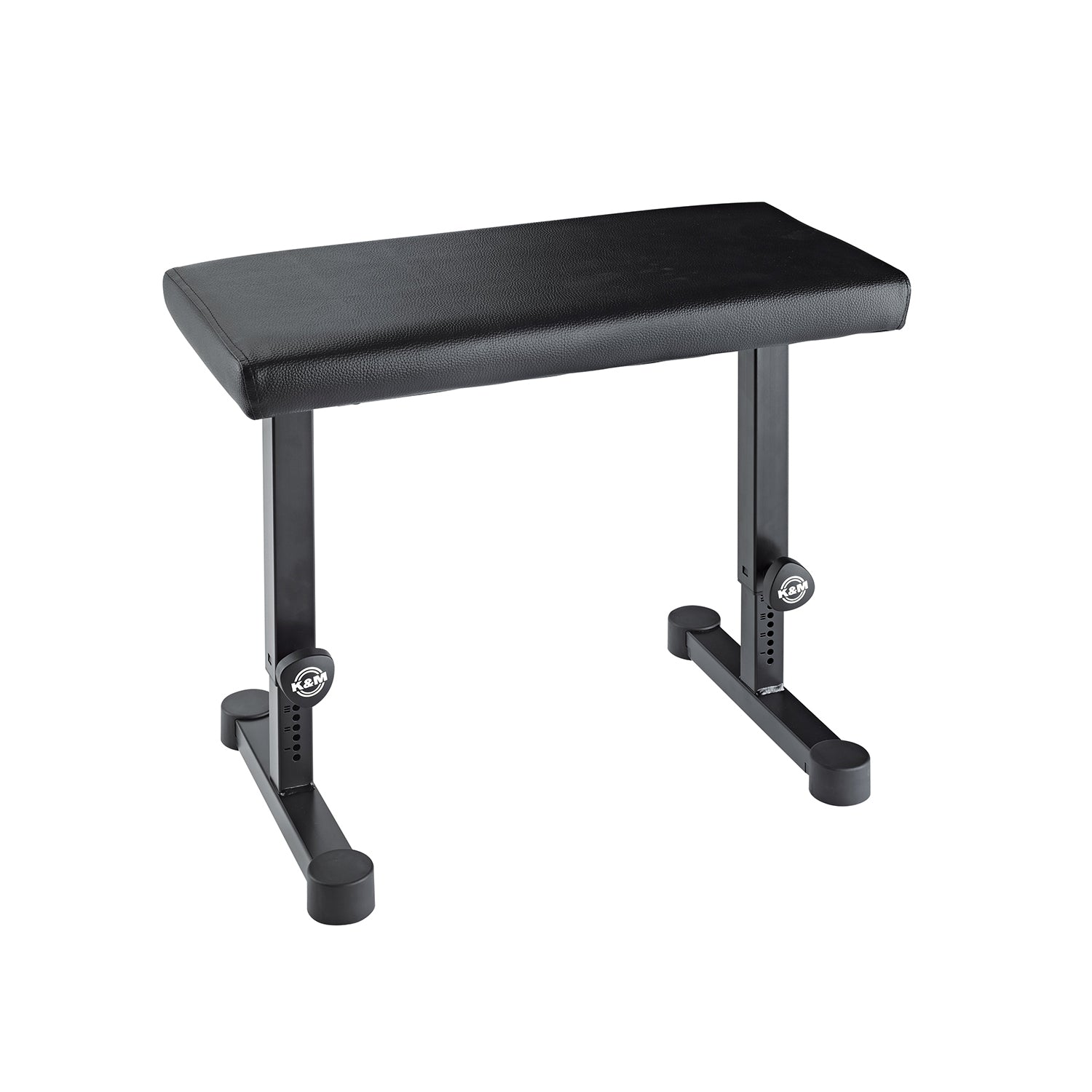 Sėdimoji dalis yra aptraukta aukštos kokybės dirbtine oda („skai“), kuri užtikrina patogų sėdėjimą ir yra lengvai prižiūrima. Vienas iš pagrindinių šio modelio privalumų – tikslus aukščio reguliavimas (nuo 430 iki 650 mm). Naudojant spyruoklinius fiksavimo varžtus iš abiejų pusių, aukštį galima lengvai keisti, o ant rėmo išgraviruota skalė padeda greitai rasti ir nustatyti jūsų asmeninę poziciją. Šis suoliukas taip pat puikiai dera su K&M 18810 ir 18820 klavišinių stovais.