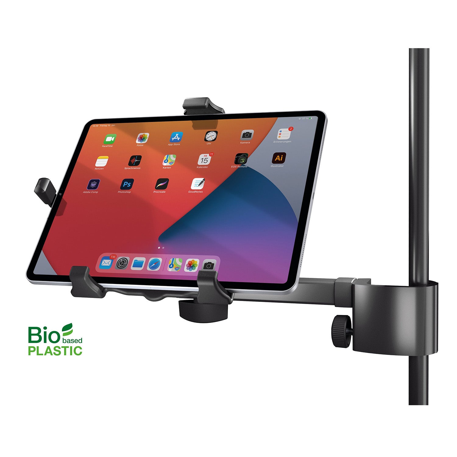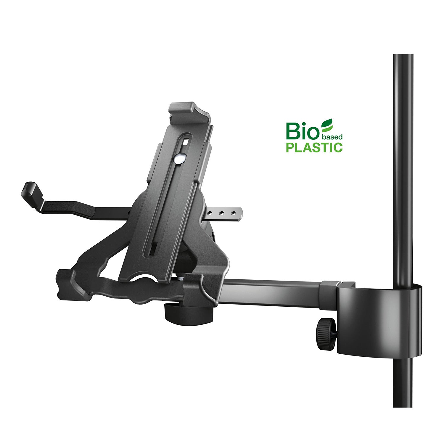 König & Meyer 19743 Tablet PC holder "Biobased" – tai universalus ir tvarus laikiklis, skirtas planšetiniams kompiuteriams, kurių ekrano dydis yra maždaug nuo 10" iki 16". Šis modelis išsiskiria tuo, kad yra pagamintas iš specialaus biologinės kilmės plastiko (kurio sudėtyje yra nuo 50% iki 100% atsinaujinančių augalinių žaliavų), taip padedant tausoti aplinką ir mažinti CO2 emisiją.