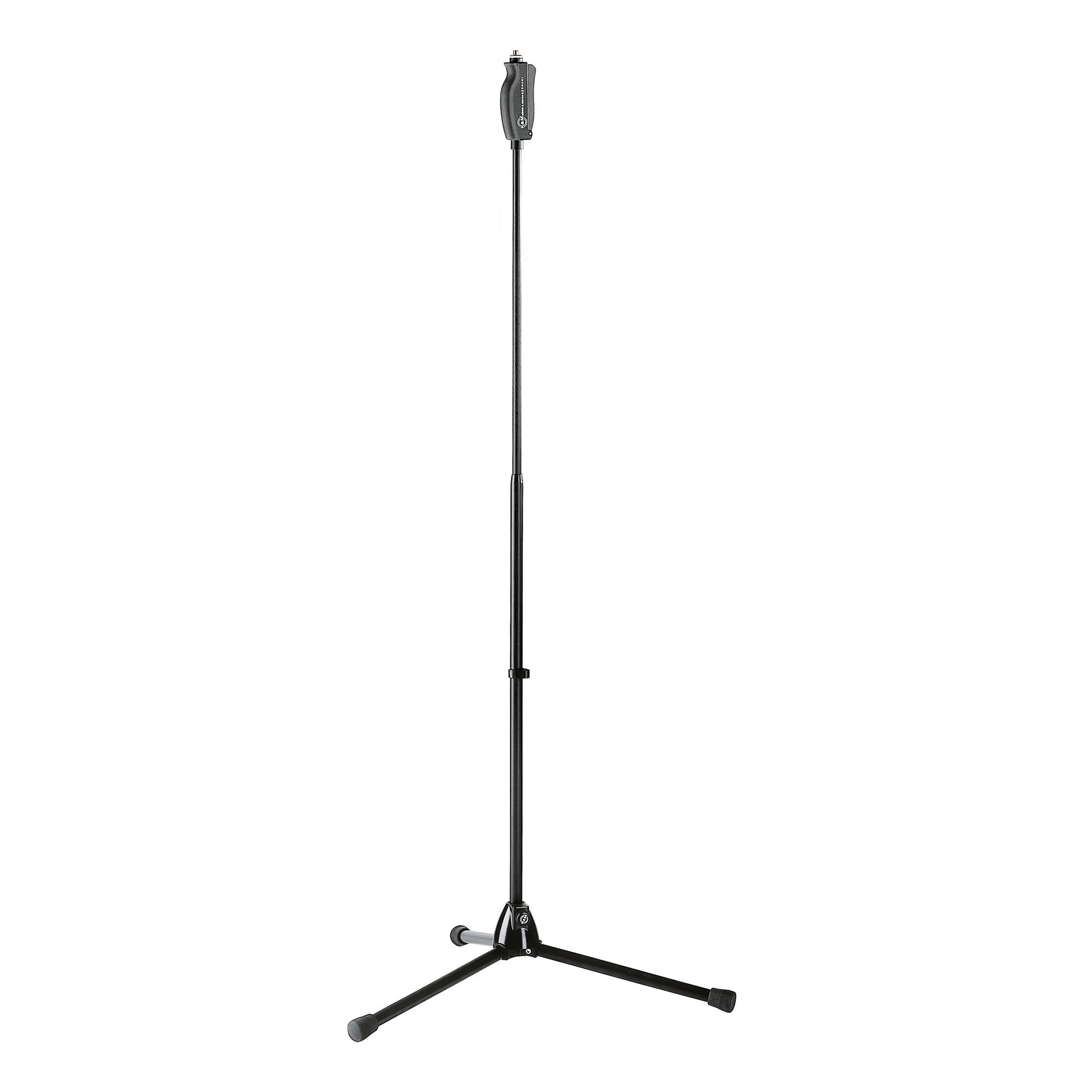 König & Meyer 25680 One-hand microphone stand – tai inovatyvus ir itin patogus mikrofono stovas, sukurtas dinamiškiems pasirodymams. Jo pagrindinis išskirtinumas – unikalus „Soft-Touch“ viena ranka valdomas mechanizmas. Norėdami pakeisti stovo aukštį, tiesiog paspauskite ergonomišką rankeną, nustatykite norimą poziciją ir atleiskite – stovas akimirksniu užsifiksuos.