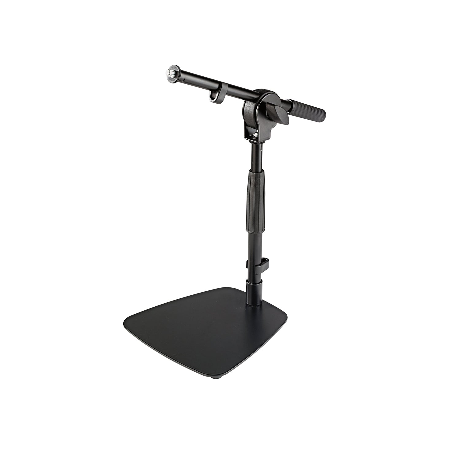 König & Meyer 25995 Table-/Floor microphone stand – tai universalus ir vietą taupantis stovas, pasižymintis plokščio plieninio pagrindo stabilumu ir funkcionalumu. Dėl savo kompaktiškos konstrukcijos jis puikiai tinka naudoti kaip stalinis stovas tinklalaidėms (podkastams), transliacijoms ir konferencijoms arba kaip žemas grindinis stovas instrumentų stiprintuvams bei būgnams įgarsinti.