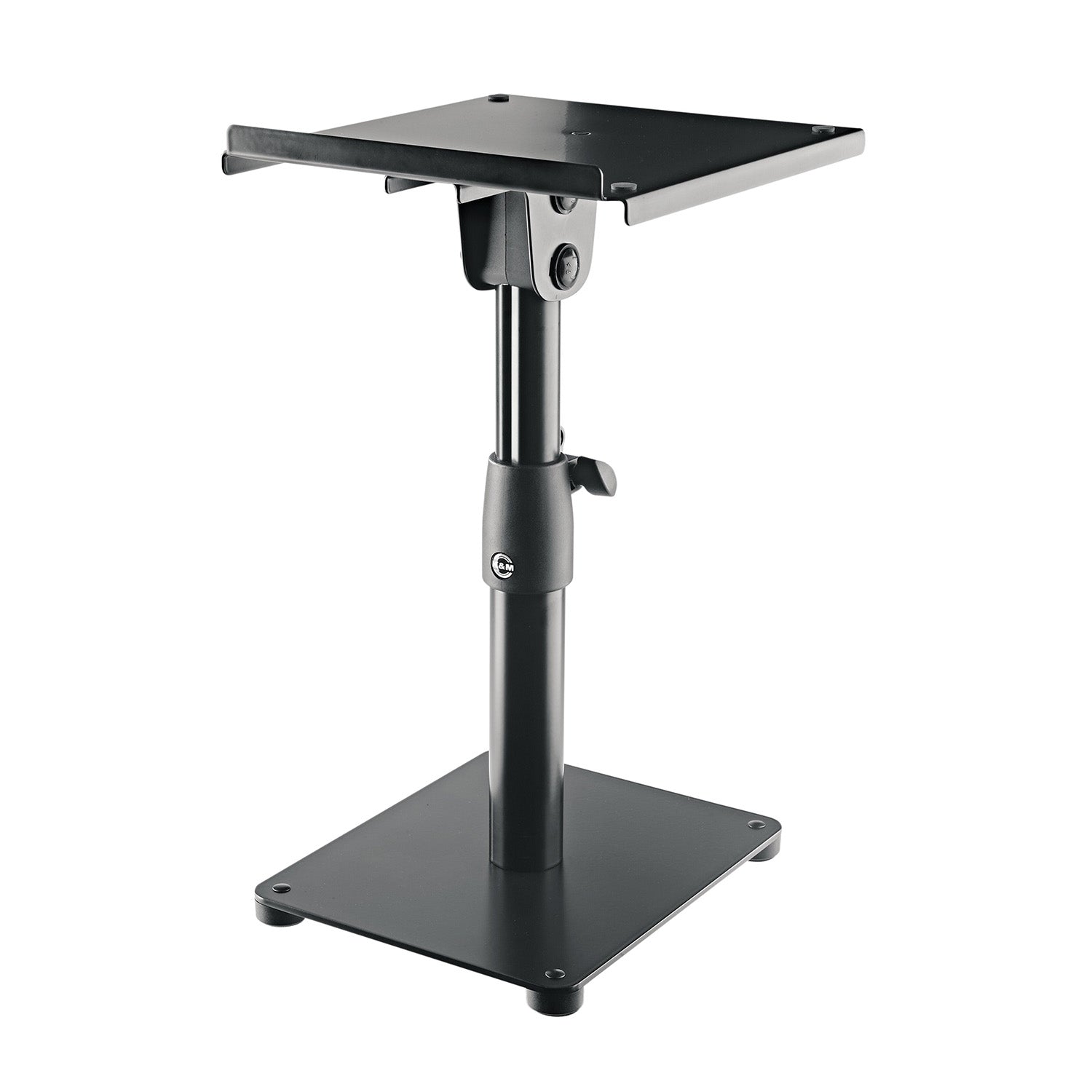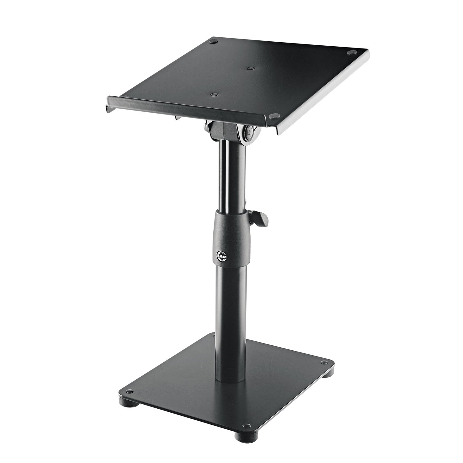 König & Meyer 26776 Tiltable desktop monitor stand – tai stabilus ir universalus stovas, sukurtas specialiai near-field monitoriams bei kitiems studijiniams garsiakalbiams. Pagrindinis šio modelio privalumas – galimybė keisti pasvirimo kampą nuo 0° iki 12.5°, kas leidžia tiksliai nukreipti garso srautą į klausytojo ausis ir taip pagerinti garso monitoringo kokybę.