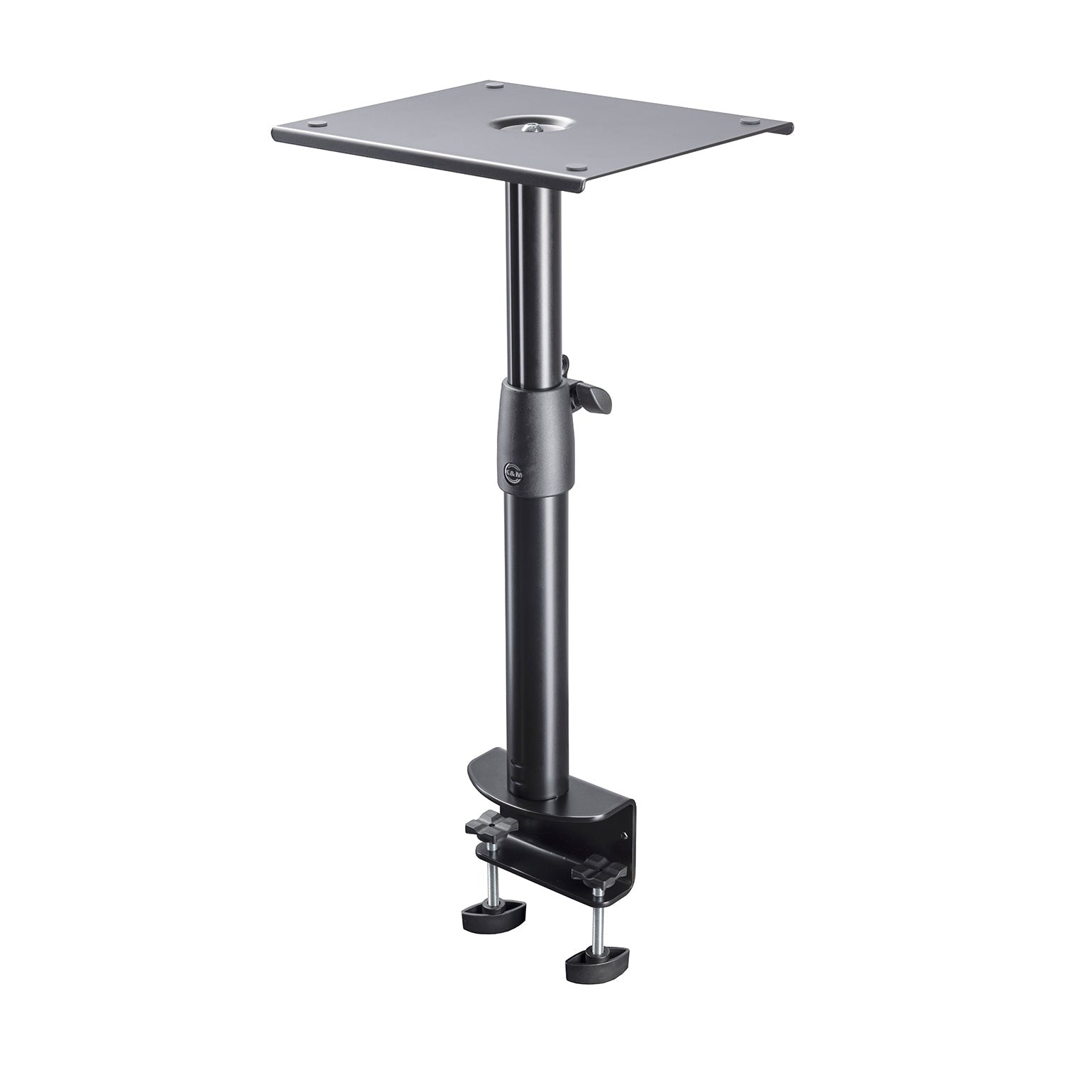 König & Meyer 26777 Clamping desktop monitor stand – tai stabilus ir tvirtas stovas artimojo lauko monitoriams, skirtas montuoti tiesiai prie stalo krašto. Tai idealus sprendimas mažoms studijoms ar darbo vietoms, kur kiekvienas centimetras yra svarbus. Pakėlus monitorius nuo stalo paviršiaus, ne tik sutaupoma vietos kitai įrangai, bet ir pagerinama garso sklaida, nes monitoriai atsiduria tinkame aukštyje.
