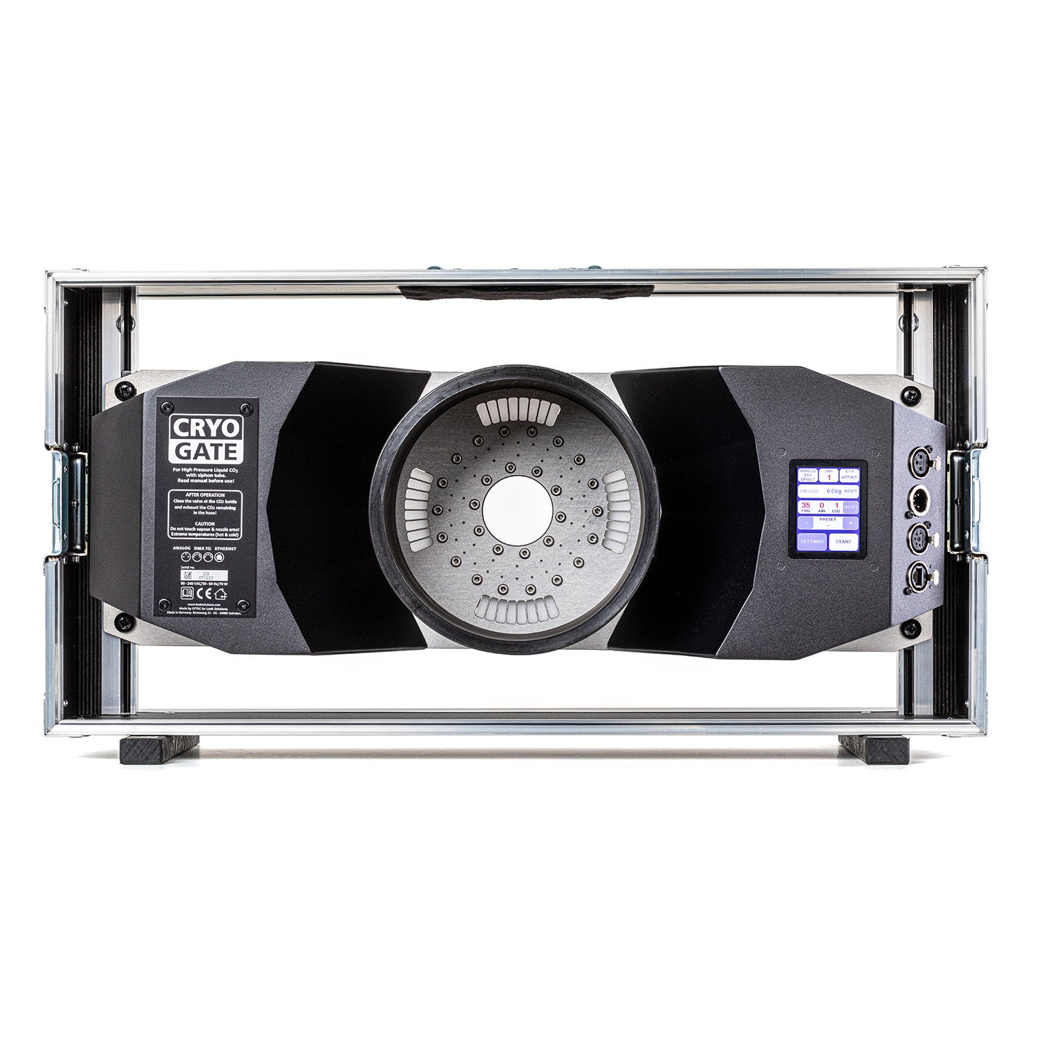 - Preciziškas valdymas: Pilnas DMX 512 valdymas leidžia atskirai reguliuoti dūmų kiekį, CO2 padavimą ir ventiliatoriaus greitį.