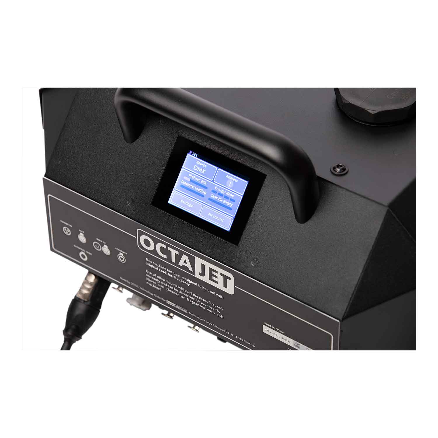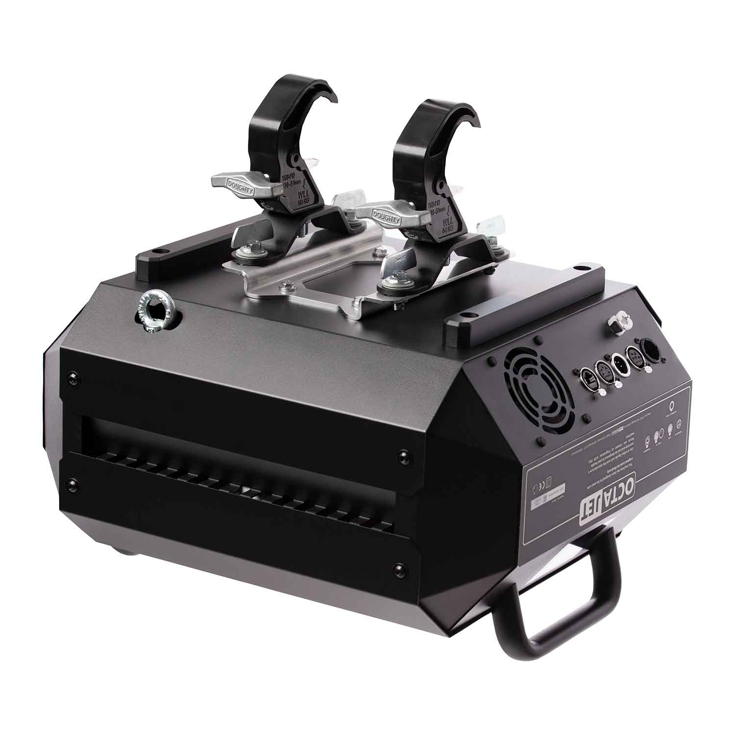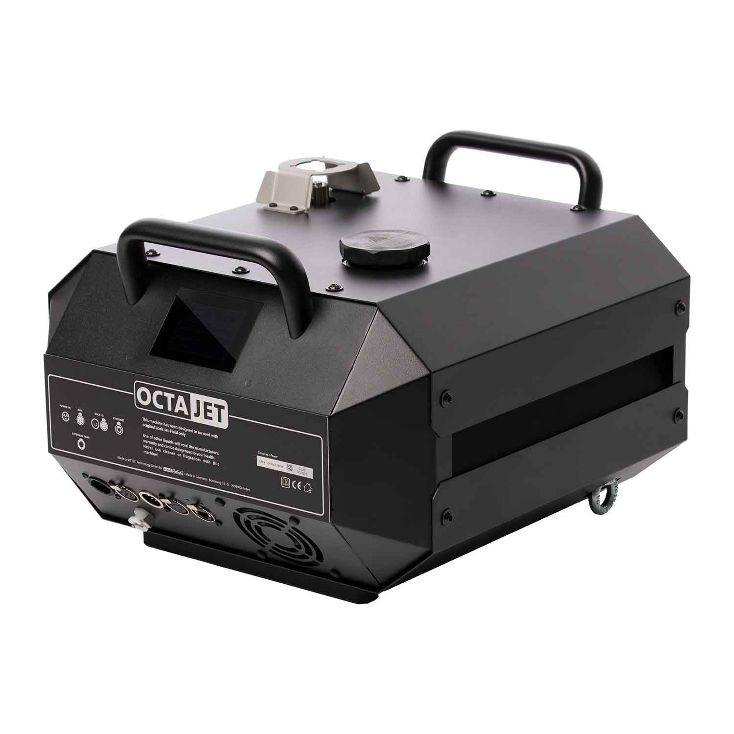 LOOK SOLUTIONS OctaJet – tai inovatyvus ir itin galingas dūmų generatorius, sukurtas kaip efektyvi alternatyva tradiciniams CO2 pliūpsnio efektams. Naudojant specialų, itin greitai išsisklaidantį skystį, šis įrenginis sukuria įspūdingas dūmų kolonas nenaudojant brangaus ir sudėtingos logistikos reikalaujančio CO2 dujų tiekimo. Dėl unikalios konstrukcijos OctaJet gali būti montuojamas ir eksploatuojamas bet kuria kryptimi: vertikaliai aukštyn, apverstas žemyn, pakreiptas 45 laipsnių kampu arba horizontaliai.