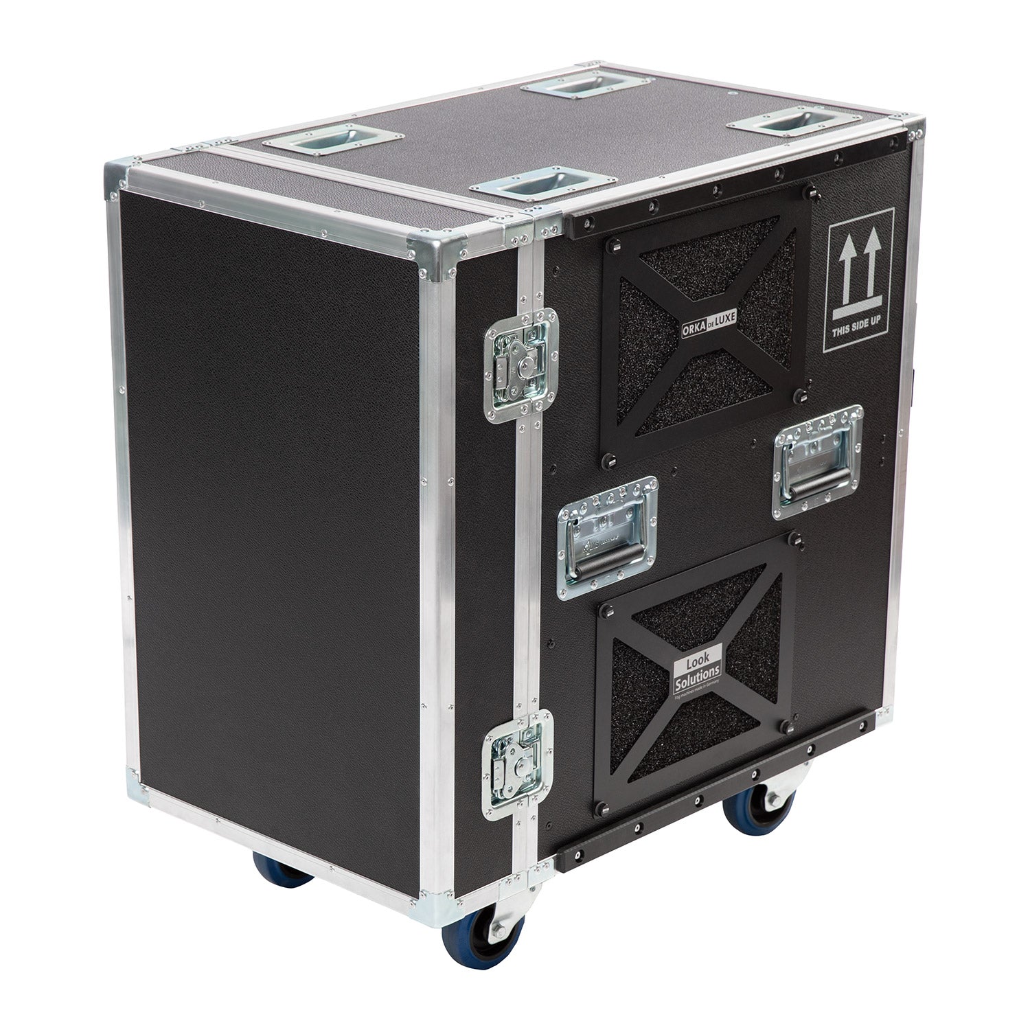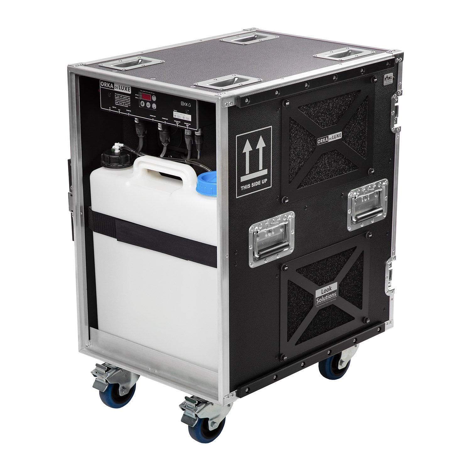 LOOK SOLUTIONS ORKA DELUXE – tai galingiausias gamintojo asortimento dūmų generatorius, sukurtas didžiausioms scenoms, stadionams, pramogų parkams bei pramoniniams priešgaisrinės saugos bandymams. Šis 9000 W galios įrenginys yra integruotas į tvirtą transportavimo dėžę (flightcase), kuri ne tik apsaugo prietaisą transportavimo metu, bet ir suteikia vietos 20 litrų skysčio kanistrui bei priedams.