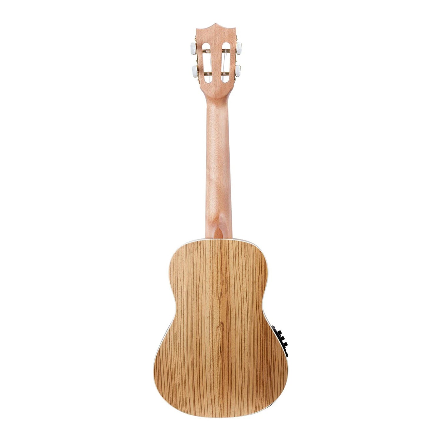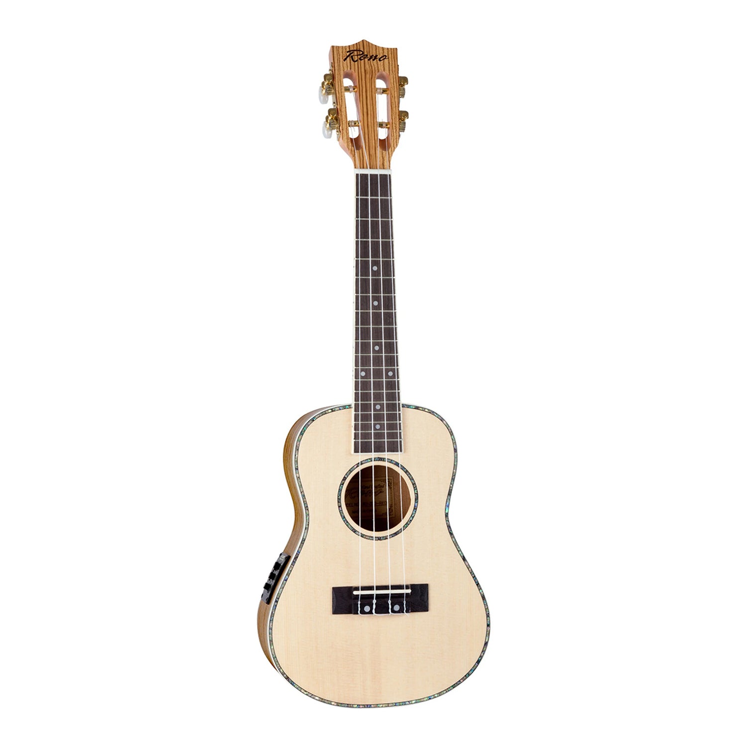 Reno RU320E yra aukščiausios klasės elektroakustinė koncertinė ukulėlė, sukurta muzikantams, kuriems reikalingas nepriekaištingas skambesys tiek grojant akustiškai, tiek prijungus prie įgarsinimo sistemos. Šis instrumentas pasižymi eglės masyvo (Solid Spruce) viršutine deka, kuri suteikia skaidrų, dinamišką ir laikui bėgant turtėjantį toną. Korpusas iš egzotiškos zebro medienos ne tik prideda sodrumo žemiesiems dažniams, bet ir sukuria unikalų vizualinį raštą.