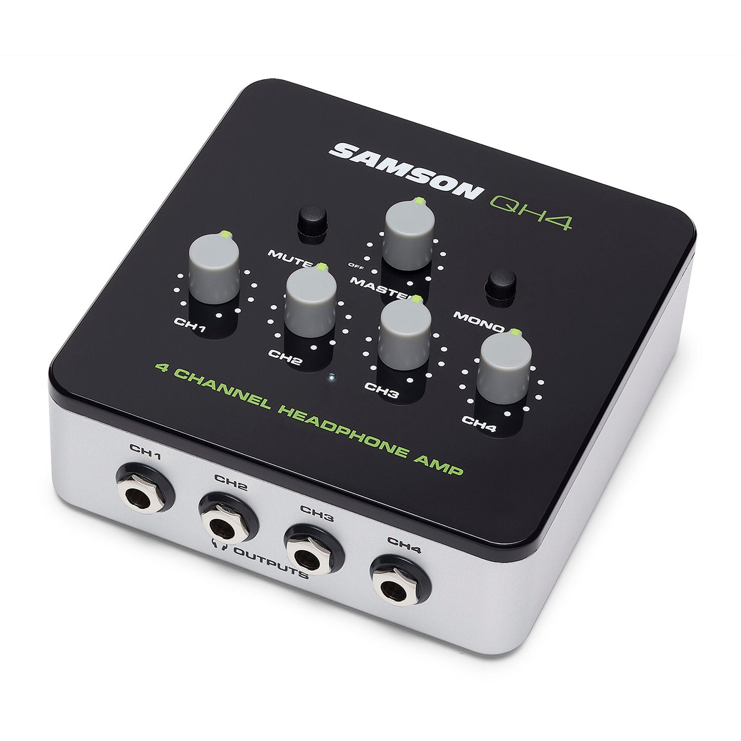 Samson QH4 – tai aukštos kokybės stalinis ausinių skirstytuvas-stiprintuvas, leidžiantis vieną stereo signalą paskirstyti į keturias poras ausinių. Tai idealus sprendimas įrašų sesijoms, kai muzikantai nori girdėti savo grojimą, arba podkastų kūrimui, kai visi dalyviai turi girdėti vienas kitą. Kiekvienas iš keturių kanalų turi nepriklausomą garso lygio valdymą, todėl kiekvienas klausytojas gali nusistatyti jam patogų garsumą.