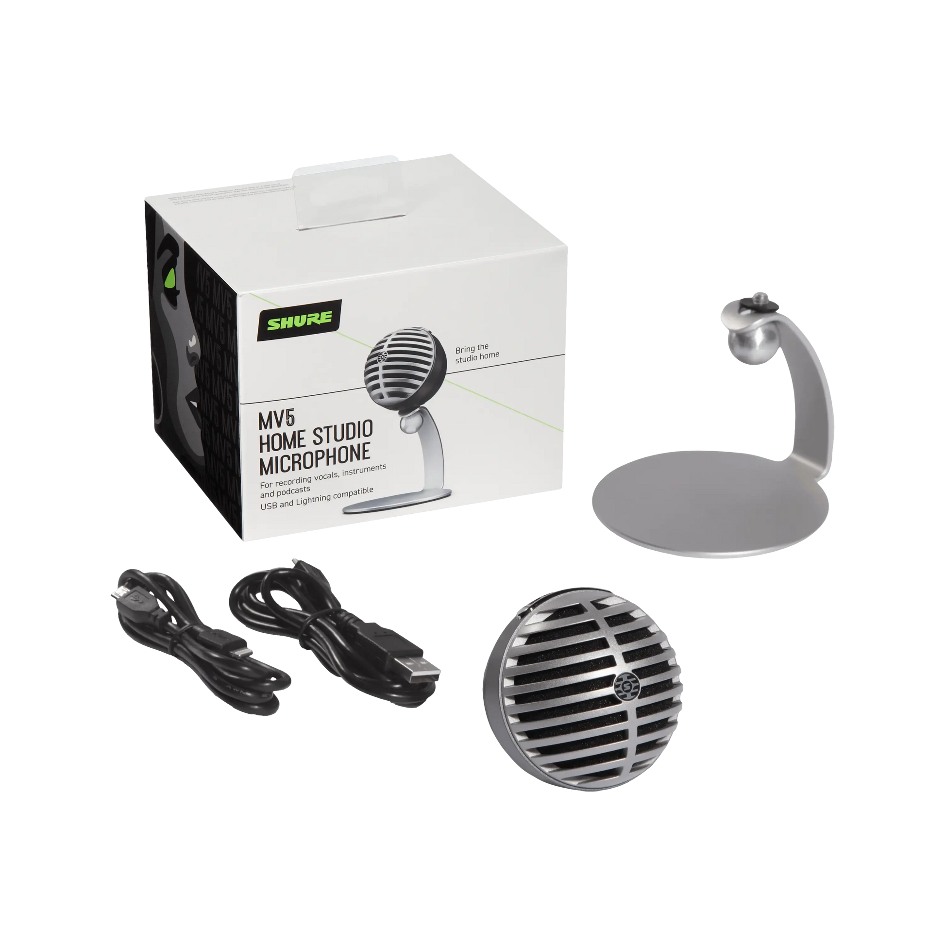 Shure MV5-B-LTG – tai stilingas, retro dizaino įkvėptas skaitmeninis mikrofonas, suteikiantis studijinę garso kokybę nešiojamame formate. Šis „Plug and Play“ įrenginys yra idealus pasirinkimas muzikantams, tinklalaidžių kūrėjams ir turinio kūrėjams, norintiems įrašinėti garsą tiesiai į savo iPhone, iPad, Mac ar PC kompiuterį be papildomos įrangos.