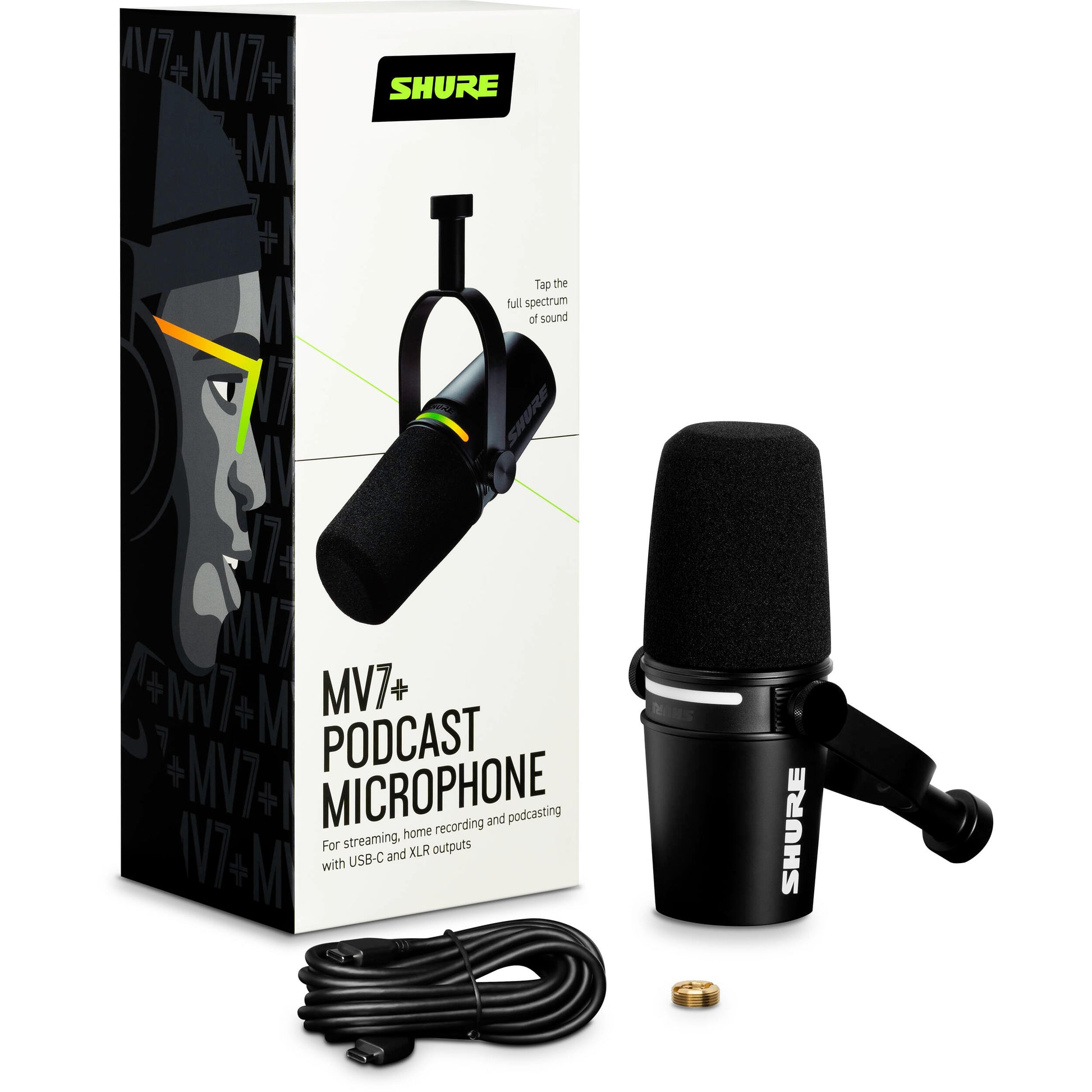 Naudojant USB jungtį, pasiekiamas patobulintas DSP valdymas per „ShurePlus MOTIV Mix™“ programėlę. Prie jau žinomo **Auto Level Mode** prisidėjo tokios naujovės kaip **Digital Popper Stopper™** (skaitmeninis filtras, šalinantis sprogstamuosius garsus) ir **Real-time Denoiser** (triukšmo slopintuvas, veikiantis realiuoju laiku). Be to, vartotojai gali eksperimentuoti su skaitmeniniais efektais, įskaitant aukštos kokybės Reverb (aidą). Su iki 24 bitų / 48 kHz garso raiška ir išplėstu 50 Hz–20 kHz dažnių diapazonu, MV7+ yra idealus pasirinkimas kūrėjams, siekiantiems maksimalios kokybės.