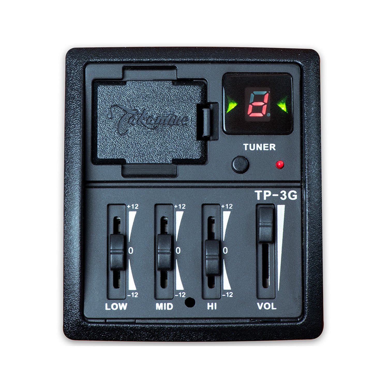 Visas gitaros korpusas pagamintas iš gabonmedžio (Okoume), kuris pasižymi saldžiu, vidurinius dažnius pabrėžiančiu tembru. Natūrali matinė („Natural Satin“) apdaila leidžia medienai laisvai rezonuoti, užtikrinant atvirą ir gyvą garsą. Sceniniam darbui gitara aprūpinta patikima Takamine TP-3G elektronika su integruotu chromatiniu derintuvu ir 3 juostų ekvalaizeriu, leidžiančiu lengvai suformuoti norimą toną stiprintuve ar PA sistemoje.